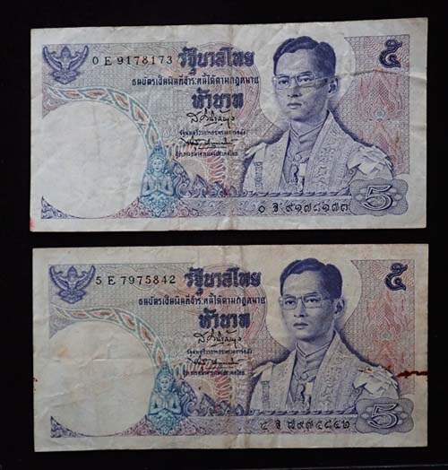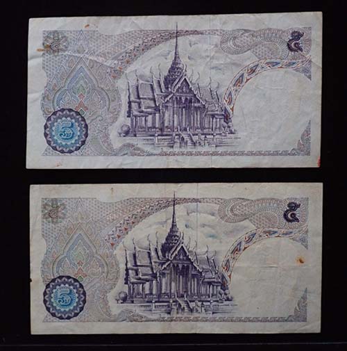 1.ราคา 5 บาท หลังพระที่นั่ง 2 ใบ สภาพผ่านการใช้