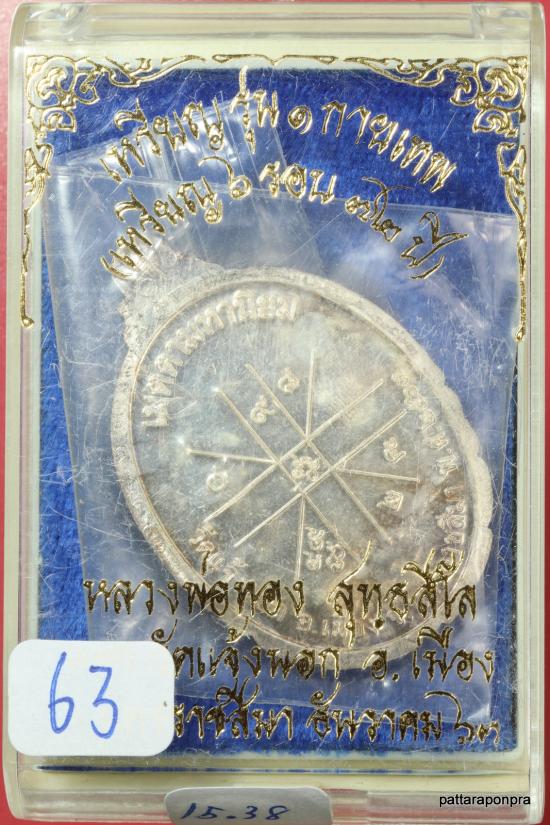 เหรียญหลวงพ่อทอง รุ่นกายเทพ ปี 2563 เนื้อเงินลงยาสีธงชาติ หนัก 15.38 กรัม หมายเลข 63
