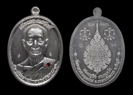 เหรียญไข่ เนื้อเงิน หลวงปู่จื่อ เลื่อนสมณศักดิ์ ฝังพลอย เลข 20