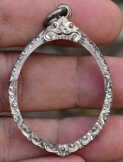***เคาะแรก 100 กรอบเงินมือสอง งานสั่งทำ รูปไข่ แกะลายยกซุ้ม สภาพดีแข็งแรง งานสวย ท่านใดหาไปใส่พระเรียนเชิญครับ***