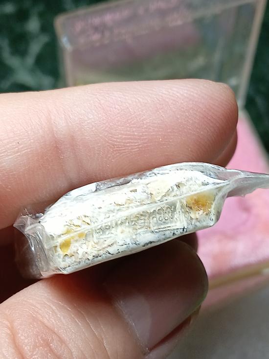 ขุนแผนกุมารทองซีนเก่ามามีคราบเหมือนสีผึ้งแห้งด้านในถุงตะกรุดเงิน |