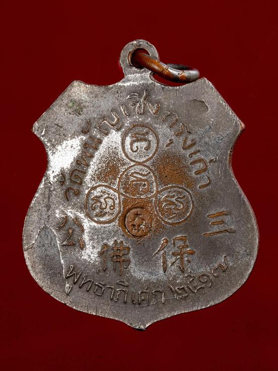 วัดใจ40 เหรียญอาร์ม หลวงพ่อโต วัดพนัญเชิง พิมพ์ใหญ่ ตอกโค๊ตภาษาจีน (นิยม) กะไหล่เงิน ปี 2517 จ.อยุธยา