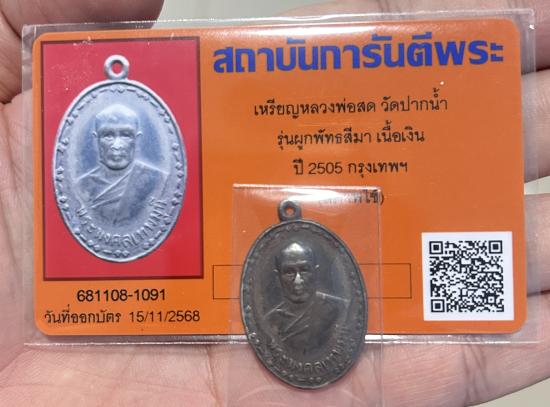 **รายการวัดใจครับ เคาะแรกแดง เหรียญหลวงพ่อสด วัดปากน้ำ รุ่นผูกพัทธสีมา เนื้อเงิน ปี 2505 กรุงเทพฯ |