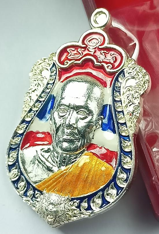 เหรียญเสมา รุ่น "พยัคฆ์บารมี 168" หลวงพ่อทอง วัดบ้านไร่ ปี64 เนื้อเงินลงยาลายธงชาติ เบอร์ 42 พร้อมกล่องครับ (เหรียญหนัก 20.67 กรัม)