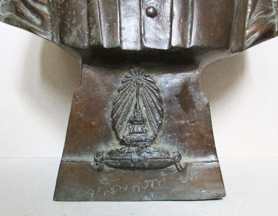 พระบรมรูปรัชกาลที่ 5 ครึ่งองค์ โดยธนาคารไทยพาณิชย์ พิธีมังคล าภิเษก ณ.วัดเบญจมพิตร พ.ศ.2539 เนื้อโลหะ รมมันปู ผิวหิ้ง คว า มสูงรวม 14.5 นิ้ว !!