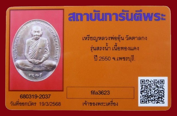 แดงที่เคาะแรก !!! เหรียญรุ่นสรงน้ำ พิมพ์ใหญ่ หลวงพ่ออุ้น วัดตาลกง ปี2550 + บัตรพระแท้ |