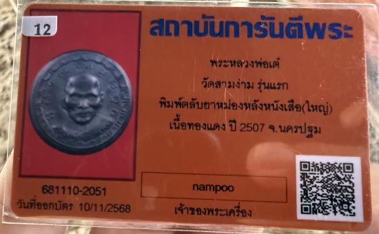 ตลับยาหม่องหลวงพ่อเตรุ่นแรก พิมพ์ใหญ่