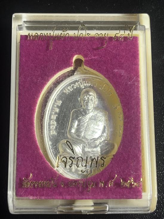 หลวงปู่แผ้ว วัดรางหมัน เจริญพรล่าง เนื้อเงิน กล่องครบ