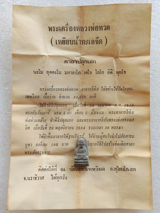 เคาะเดียวแดง ....หลวงปู่ทวดเนื้อว่าน วัดโกลกเทพวิมล อ.สุไหงโก-ลก จ.นราธิวาส ปี2510 พร้อมซองเดิมและใบกำกับ อาจารย์ทิม วัดช้างให้ พ่อท่านคล้าย วัดสวนขัน ปลุกเสก สภาพสวย