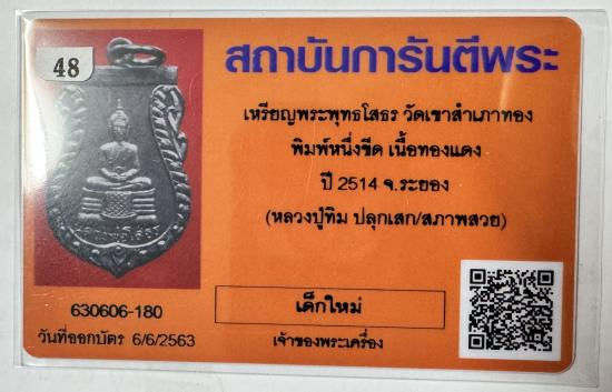 ชื่อพระเครื่อง เหรียญหลวงพ่อโสธร วัดเขาสำเภาทอง พิมพ์ 1 ขีด พร้อมบัตรสภาพสวย