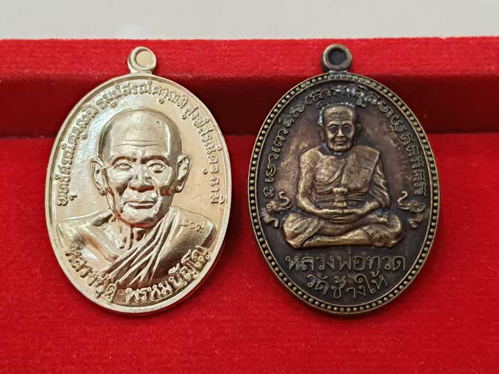 วัดใจ 100 เดียวแดง ++ เหรียญหลวงปู่ดู่ รุ่น 109 ปี บารมีหลวงปู่ดู่ ปี2556 (2 เหรียญ) เนื้ออัลปาก้า + รมผิวซาติน กล่องเดิมครับ