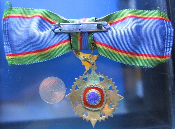เหรียญเครื่องราชย์อิสริยาภรณ์ มหามงกุฎ หลัง จปร. เนื้อเงินลงยาขนาดใหญ่ พร้อมแพรแถบ สวยงามมาก ขนาดเทียบเหรียญบาท