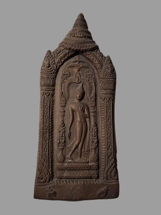พระกำแพงศอกเนื้อดิน ขนาดใหญ่ สูง 17 นิ้วครึ่ง กว้าง 7 นิ้วครึ่ง ไม่ทราบที่ สวยสมบูรณ์ ไม่แตกไม่ร้าวครับ