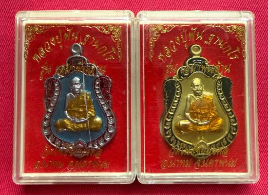 วัดใจไปเลย เหรียญเสมาพันล้าน หลวงปู่พัน วัดโพธิ์ชัยมงคล จ. นครพนม ปี 2562 เนื้อตะกั่วลงยาและทองทิพย์ลงยา