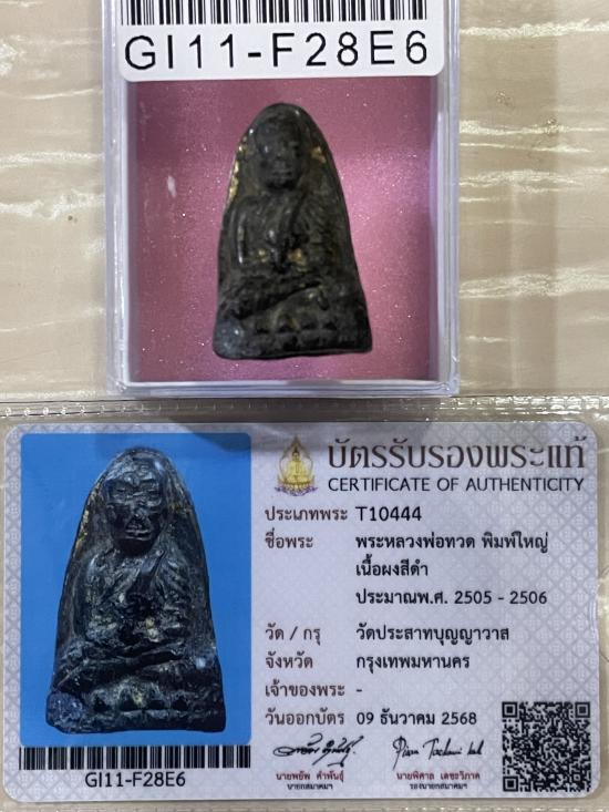 (เคาะแดง4900) +บัตรสมาคม หลวงปู่ทวด วัดประสาท เนื้อดำ ปิดทองเดิม