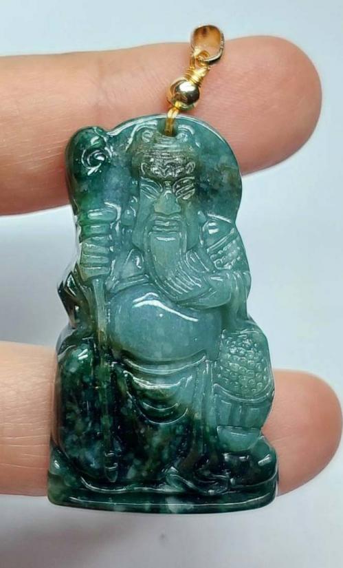 จี้หยกเทพเจ้ากวนอู หยกพม่า เนื้อโอเชียนบลูทูโทน ขนาดสูง 2 นิ้ว |