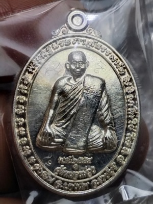 เหรียญรุ่นแรก พระครูประภาสธรรมทัต(พระอาจารย์ป้อม) วัดหนองม่วง จ.ราชบุรี ปี2554 เนื้อเงิน จารหน้าหลัง |