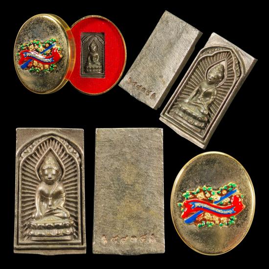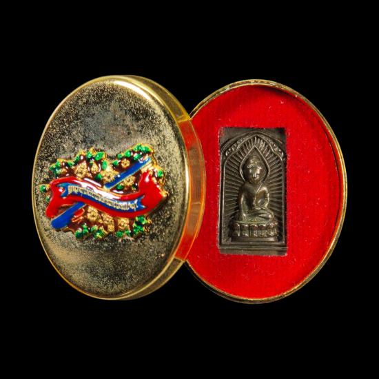 พระพิมพ์ประภามณฑล กริ่งมงคลเทพประสิทธิ์ ปลุกเสกโดย พระอาจารย์ต้อม วัดท่าสะแบง จัดสร้างโดย คุณ อั๋น โอกิ มีมวลสารวัตถุมงคล พรหมประสิทธิ์ เทพบันดาลทรัพย์ มงคลเทพประสิทธิ์ หมายเลข ๘๔๓๔ พร้อมตลับชุบทองลงยา
