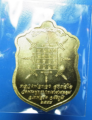 เหรียญเลื่อนสมณศักดิ์ หลวงพ่อทอง วัดพระพุทธบาทเขายายหอม จ.ชัยภูมิ ปี 2558 เนื้อทองทิพย์