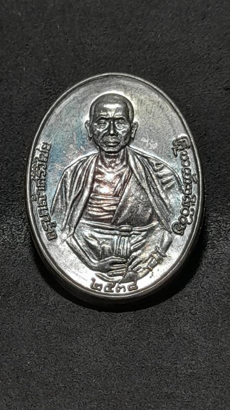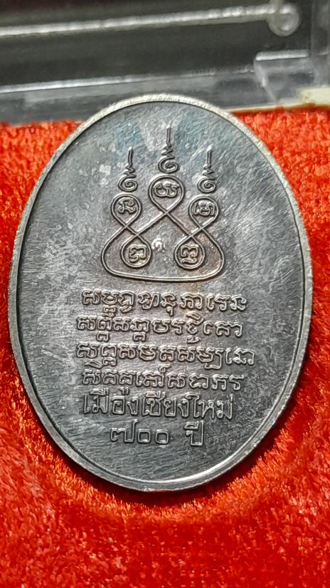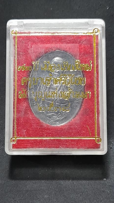 เหรียญครูบาศรีวิชัย รุ่นฉลองเมืองเชียงใหม่700ปี เชียงใหม่ วัดเจดีย์หลวง ปี2538 (เนื้อเงิน) ตอกโค๊ต ด. 1 ใน 500 เหรียญ สวยคากล่องเดิม