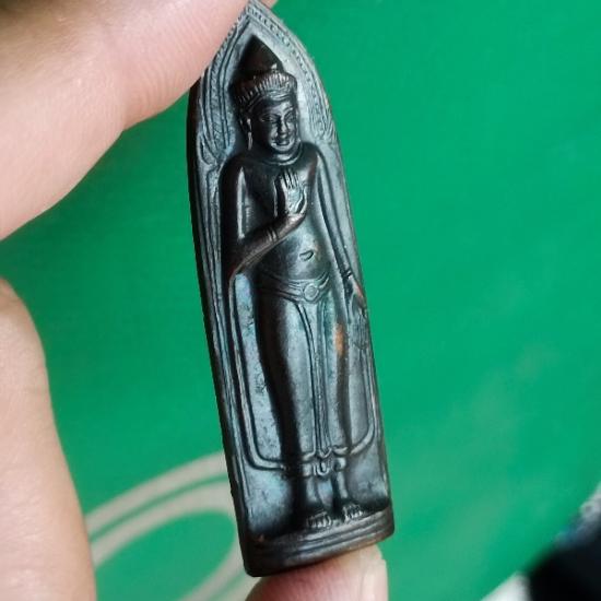 พระร่วงหลังรางปืนเนื้อทองแดงวัดพระธาตุดอยสุเทพจังหวัดเชียงใหม่ปี 2515 พร้อมกล่องเดิมพิธีปลุกเสก มีเกจิร่วมปลุกเสกอาทิหลวงปู่แหวน หลวงพ่อเกษม หลวงปู่โต๊ะเป็นต้น พิมพ์หลังพระธาตุจม.. |