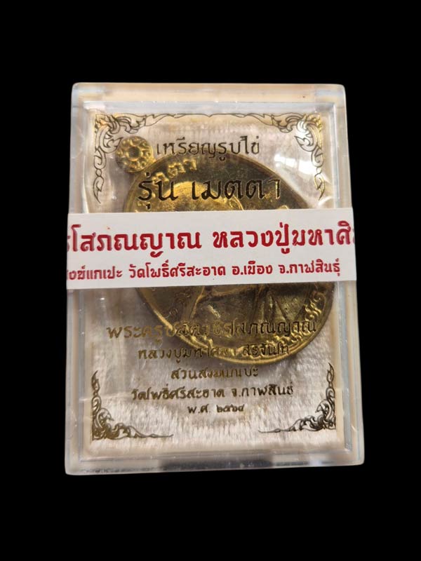 เหรียญเต็มองค์รุ่นแรก วัดจัดสร้าง ที่ระลึกบุญประทายข้าวเปลือก วัดพระธาตุหมื่นหินวชิรโสภณญาณ อ.เขาวง จ.กาฬสินธุ์