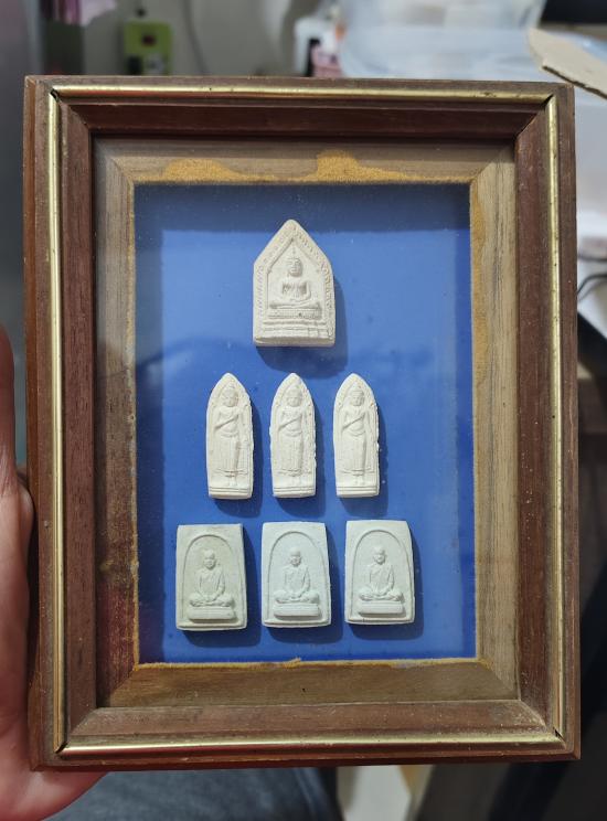 พระเนื้อผงชุดกรรมการ 7 องค์ เลี่ยมใส่กรอบไม้เดิมเก่า |