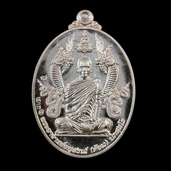 เหรียญสมโภชพญานาค พระอาจารย์ต้อม ปภัสสโร วัดท่าสะแบง จ.ร้อยเอ็ด ปี2566 เนื้อเงิน *หายาก หมุนเวียนน้อยมาก* ตอกโค้ตหมายเลข 131 พร้อมกล่องเดิม