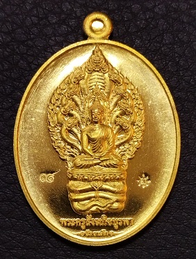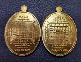 เหรียญหลวงปู่บัว รุ่นมงคลมหาลาภ เหรียญนั่่งโต๊ะเต็มองค์ หมายเลข 2365 +เหรียญพระนากปรก เลข 2324 รวม 2 เหรียญ เนื้อทองระฆัง ปี 2559 ราคาวัดใจ