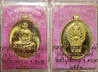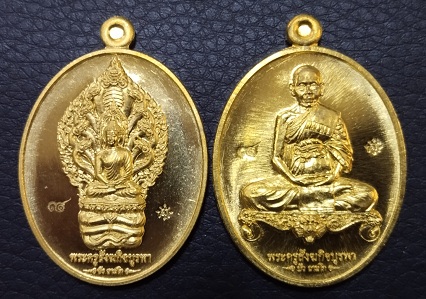 เหรียญหลวงปู่บัว รุ่นมงคลมหาลาภ เหรียญนั่่งโต๊ะเต็มองค์+เหรียญพระนากปรก 2 เหรียญ เนื้อทองระฆัง ปี 2559 ราคาวัดใจ