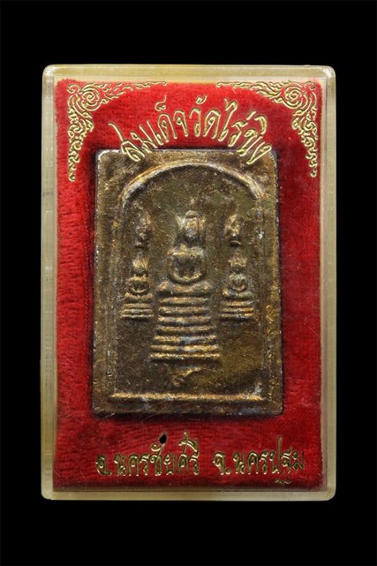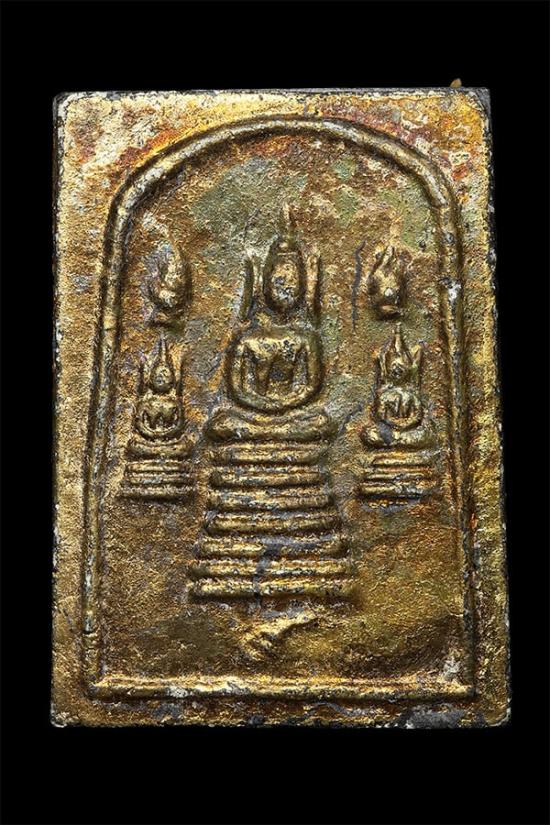 100 / พระวัดไร่ขิงพิมพ์สามพี่น้อง ปี2510 เนื้อผงปิดทองหลังหมายเลข-สวยเดิมพร้อมกล่อง
