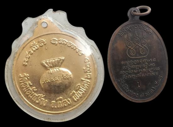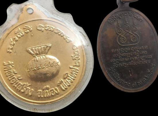 พร้อมกันทีเดียว 2 เหรียญครับ เลี่ยมเก่าไว้ครับ เหรียญขวัญถุงครูบาศรีวิชัย เนื้อกะไหล่ทอง ไม่มีกล่องครับ วัดพันอ้น ปี พ.ศ 2521(พระเกจิอาจารย์ ดังร่วมปลุกเสก พิธี ปี 2521)
