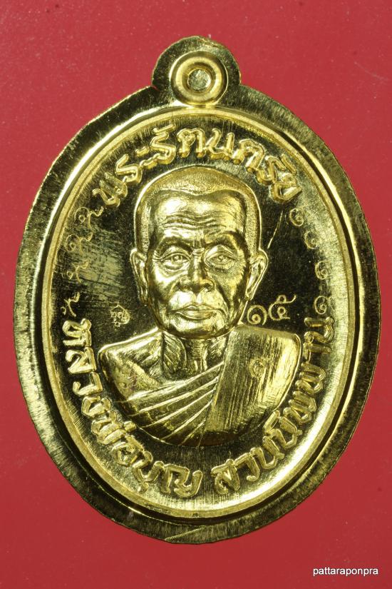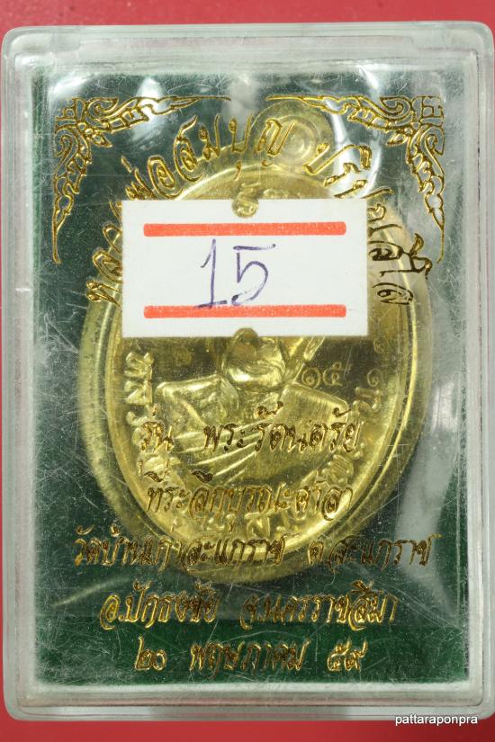 เหรียญหลวงปู่บุญ รุ่นพระรัตนตรัย ปี 2559 เนื้อทองฝาบาตร หมายเลข 15
