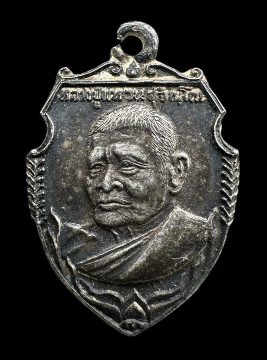 เหรียญโล่ห์เมตตา เนื้อเงิน ตอกโค้ต(นิยม) หลวงปู่แหวน สุจิณฺโณ ปี 2520 |