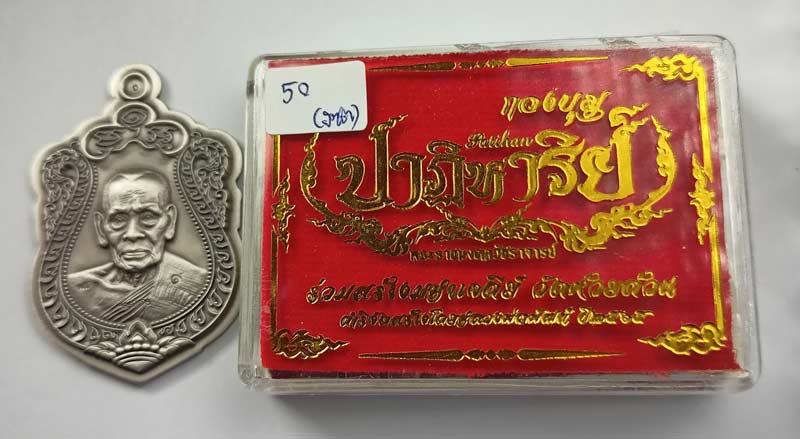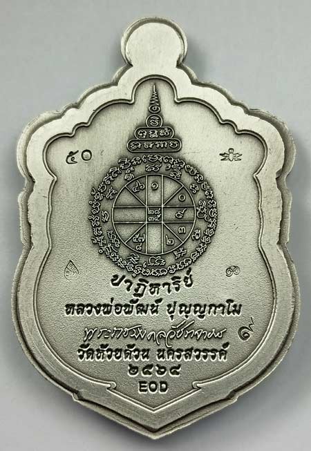 เหรียญ "ปาฏิหาริย์ EOD"(พิมพ์เสมาครึ่งองค์) หลวงพ่อพัฒน์ วัดห้วยด้วน เนื้อเงินรมซาตินไม่ตัดปีก เบอร์ 50 พร้อมกล่องครับ (เหรียญหนัก 21.38 กรัม)