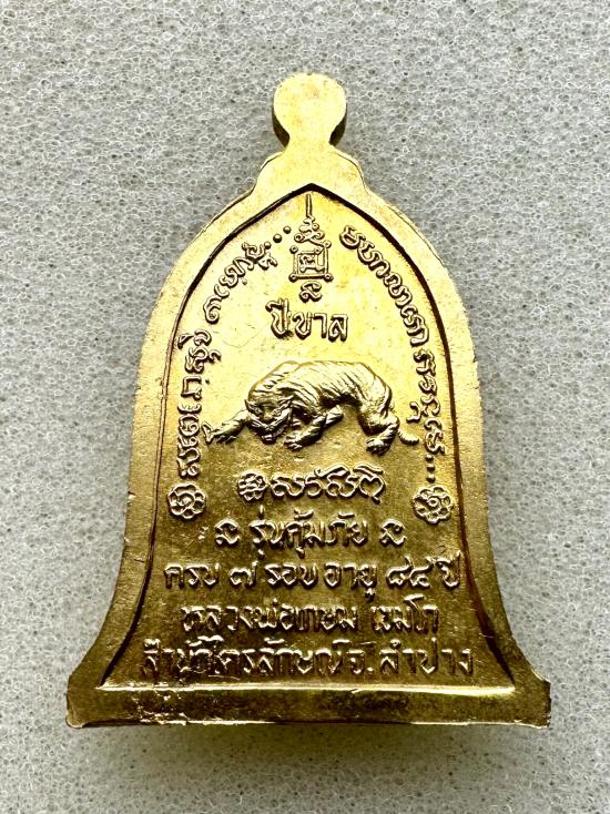 เหรียญระฆังรุ่นคุ้มภัยประจำปีเกิด (ปีขาล) หลวงพ่อเกษม เขมโก ครบ 7 รอบ อายุ ๘๔ ปี ปี 2538 เนื้อทองเหลือง