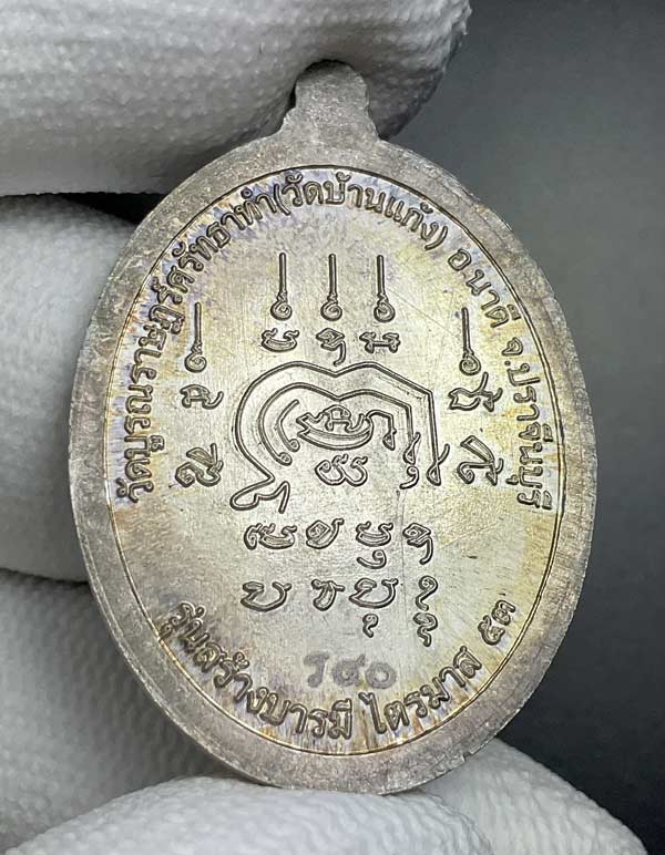 ส่วนเนื้อทองฝาบาตรหลังเรียบ (จำนวน 267 เหรียญ ตอกโค้ดและหมายเลข ราคา 300 บาท) ด้านหลังหลวงพ่อลงเหล็กจาร และจะเปิดให้บูชาหลังเสร็จพิธีพุทธาภิเษก(ไม่รับจอง)