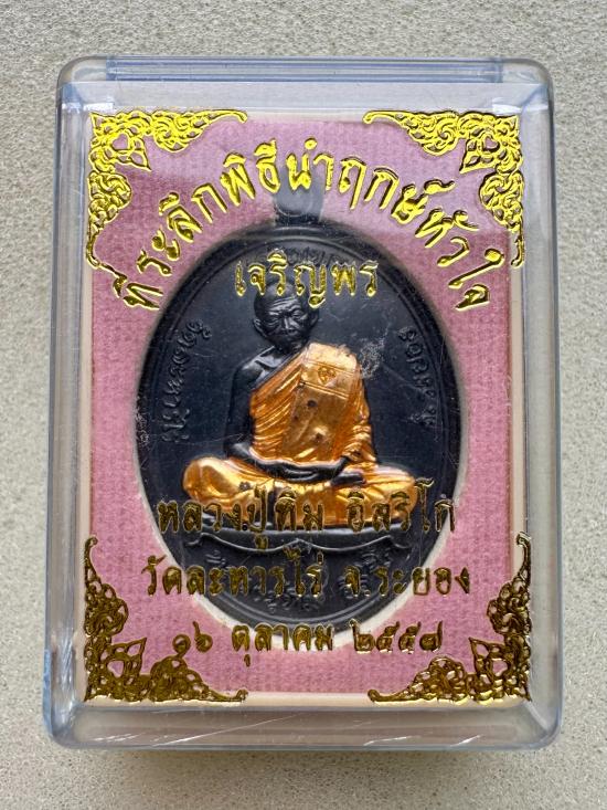 เหรียญเจริญพรบน (ย้อนยุค) หลวงปู่ทิม วัดละหารไร่ รุ่นหัวใจอิสริโก จัดสร้างปี ๒๕๕๗ เนื้อทองแดงลงยา เลข 6928 พร้อมกล่องเดิม