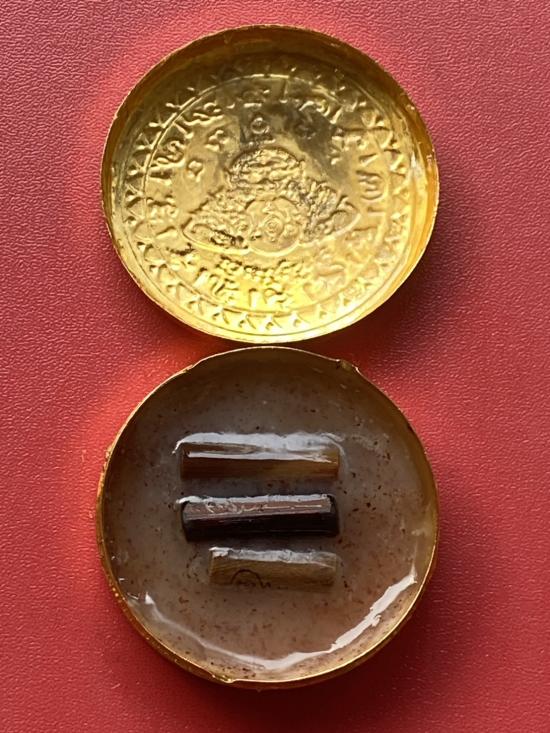 เนื้อ โลหะชุบทองลงยาสีดำขอบสีแดง ขนาด5ซม |