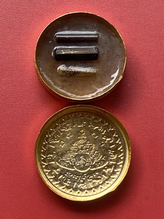 เนื้อ โลหะชุบทองลงยาสีดำขอบสีแดง ขนาด5ซม |