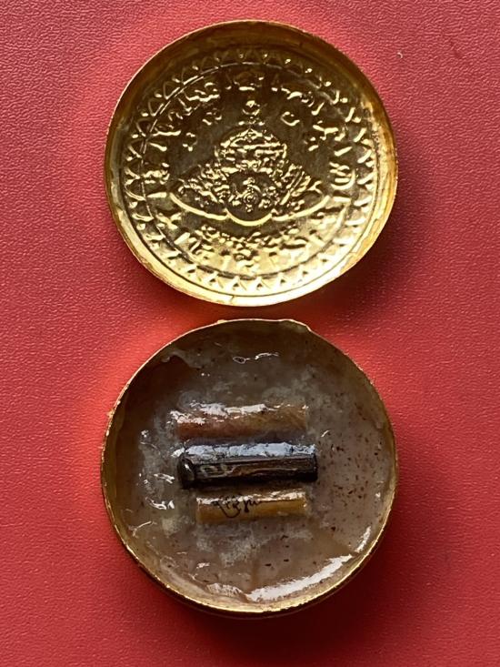 เนื้อ โลหะชุบทองลงยาสีดำขอบสีแดง ขนาด5ซม |