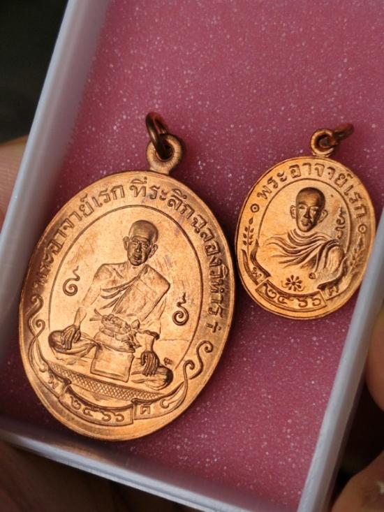 เหรียญฉลองวิหาร พระอาจารย์อดิเรก วัดหนองทราย เนื้อทองแดง พิมพ์ใหญ่กับพิมพ์เล็ก สวยๆแดงๆครับ |