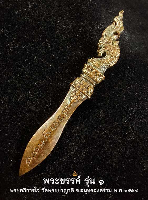 พระขรรค์รุ่น ๑ พระอธิการใจ ฐิตาจาโร วัดพระยาญาติ จ.สมุทรสงคราม ปี 2558 เนื้อสัมฤทธิ์ |