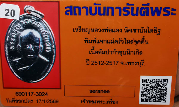 เหรียญหลวงพ่อแดง วัดเขาบันไดอิฐ พิมพ์แจกแม่ครัวไหล่จุดตื้น เนื้ออัลปาก้าชุบนิกเกิล ห่วงเดิม ปี2512-2517 จ.เพชรบุรี + บัตรG-pra สภาพสวยเดิมค่ะ |