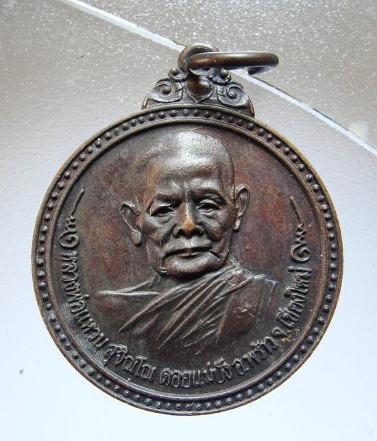 เหรียญหลวงปู่แหวน สุจิณฺโณ วัดป่าเจริญธรรม สันป่าตอง เชียงใหม่ ปี2517 เนื้อทองแดง ตอกโค๊ตชัดเจน |