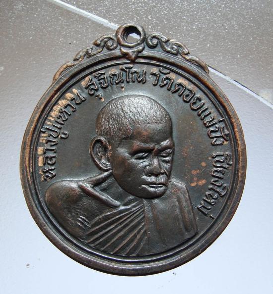 หรียญกลมเจดีย์ 84 หลวงปู่แหวน สุจิณฺโณ วัดดอยแม่ปั๋ง พร้าว เชียงใหม่ ปี 2517 เนื้อทองแดงโค๊ตชัดๆ |