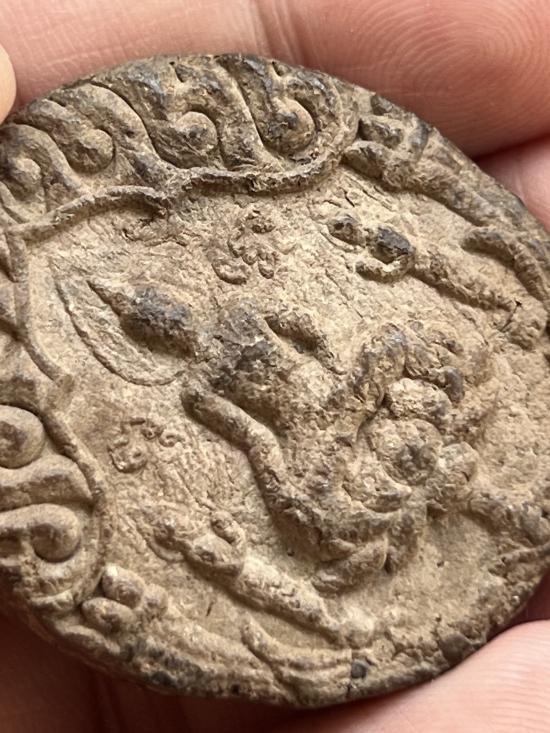 พระปิดตาเนื้อดิน หลังเขียนยันต์ ไม่ทราบที่