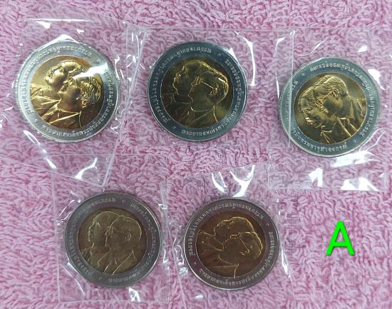 #A, เหรียญหลังครุฑ 10บาทสองสี วาระ ครบ 100ปี ธนาคารไทยแห่งแรก สภาพสวยสมบูรณ์ ( 5 เหรียญ)