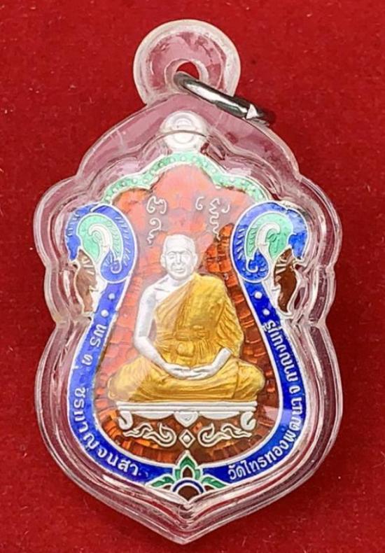 เหรียญเสมา รุ่นแรก หลวงพ่อเพชร วัดไทรทอง จ.กาญจนบุรี เนื้อเงินลงยา