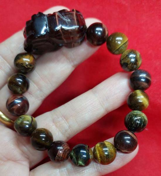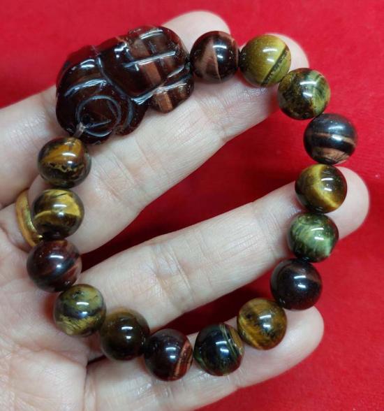 ***วัดใจ***สร้อยข้อมือปี่เซี๊ยะ หินไทเกอร์อาย 3 ทหารเสือ 10 มิล |